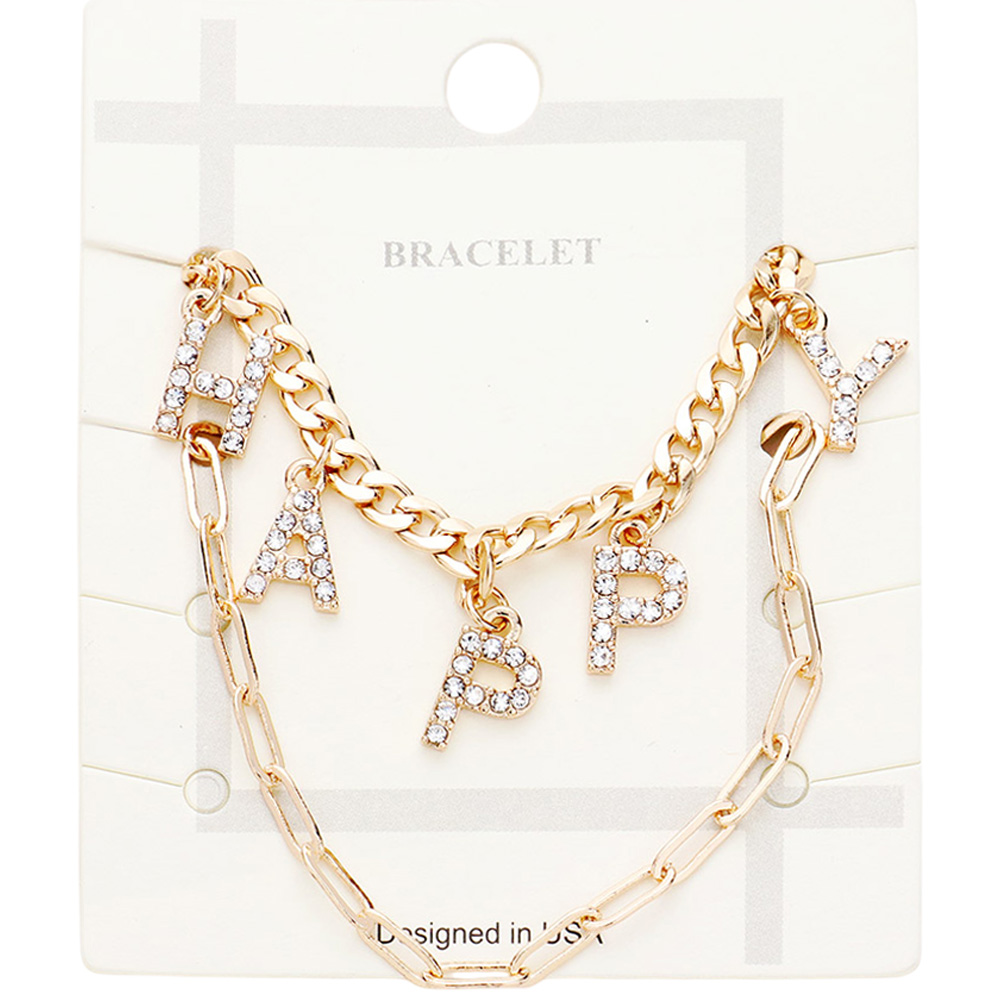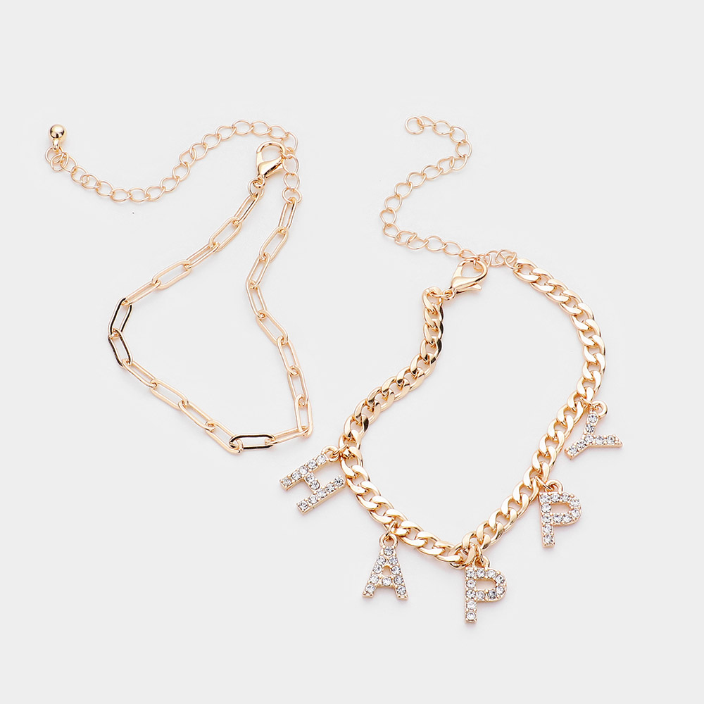 2PCS - HAPPY Rhinestone Embellished Metal Chain Bracelets