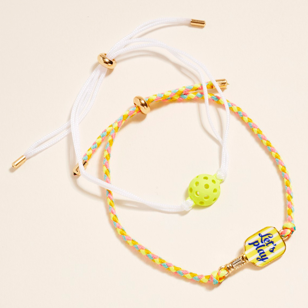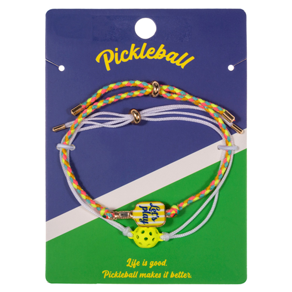 Details • Size : 0.9" H • Adjustable • This adjustable bracelet set features a playful pickleball theme with a sporty charm and coordinating cord design for everyday wear. Designed with flexible sizing for a comfortable fit, these bracelets are perfect for stacking, gifting, team events, or casual accessory collections celebrating an active and fun lifestyle. • Lead and Nickel Compliant