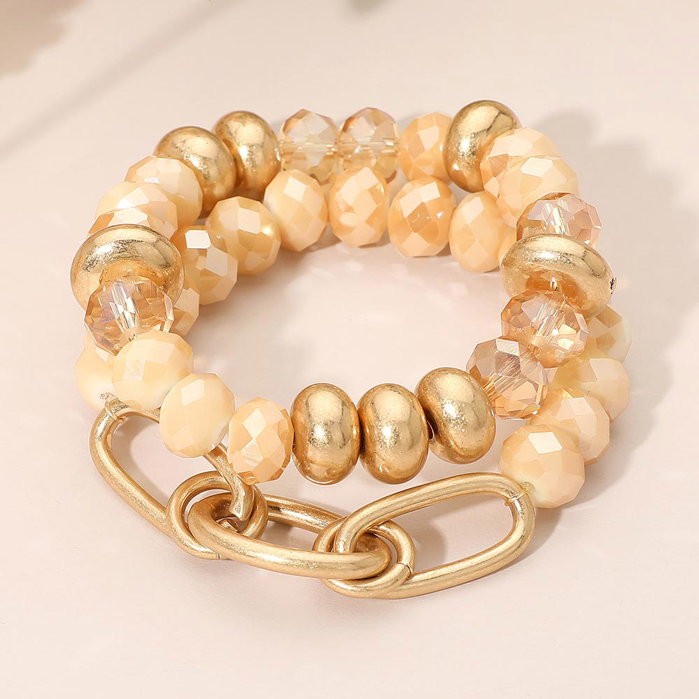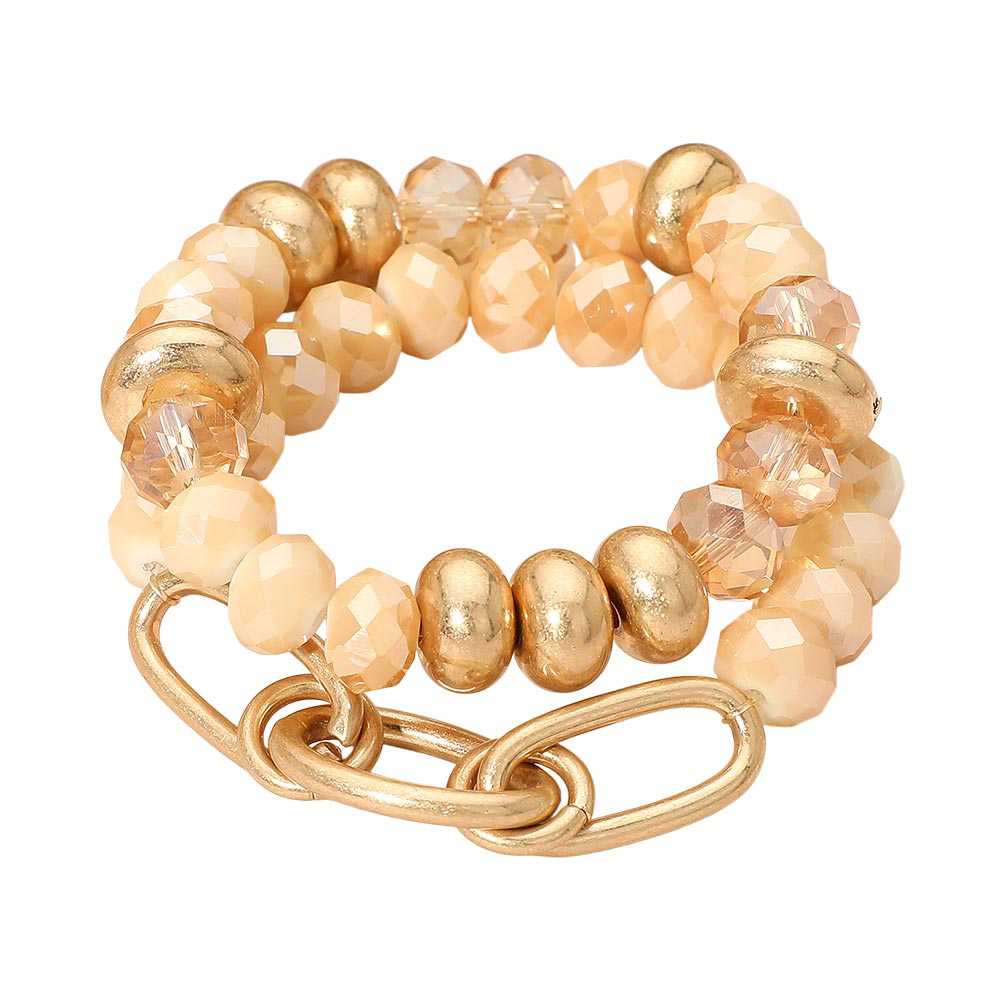 Details • Size : 1" H • Stretchable • Stylish beaded stretch bracelet set featuring faceted beads, smooth round accents, and a bold chain detail. Designed for easy wear and versatile styling, this layered bracelet set adds texture and shine to casual or dressy looks. Perfect for gifting or everyday accessorizing. • Lead and Nickel Compliant