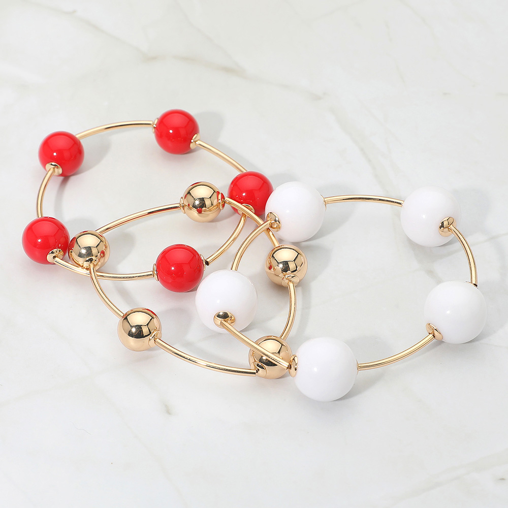 Details • Size : 1.75" H • Stretchable • Trendy bangle bracelet featuring bold round beads arranged on sleek bands for a playful and modern look. A fun statement piece that adds personality and charm to any outfit, perfect for stacking or wearing solo with stylish flair. • Lead and Nickel Compliant