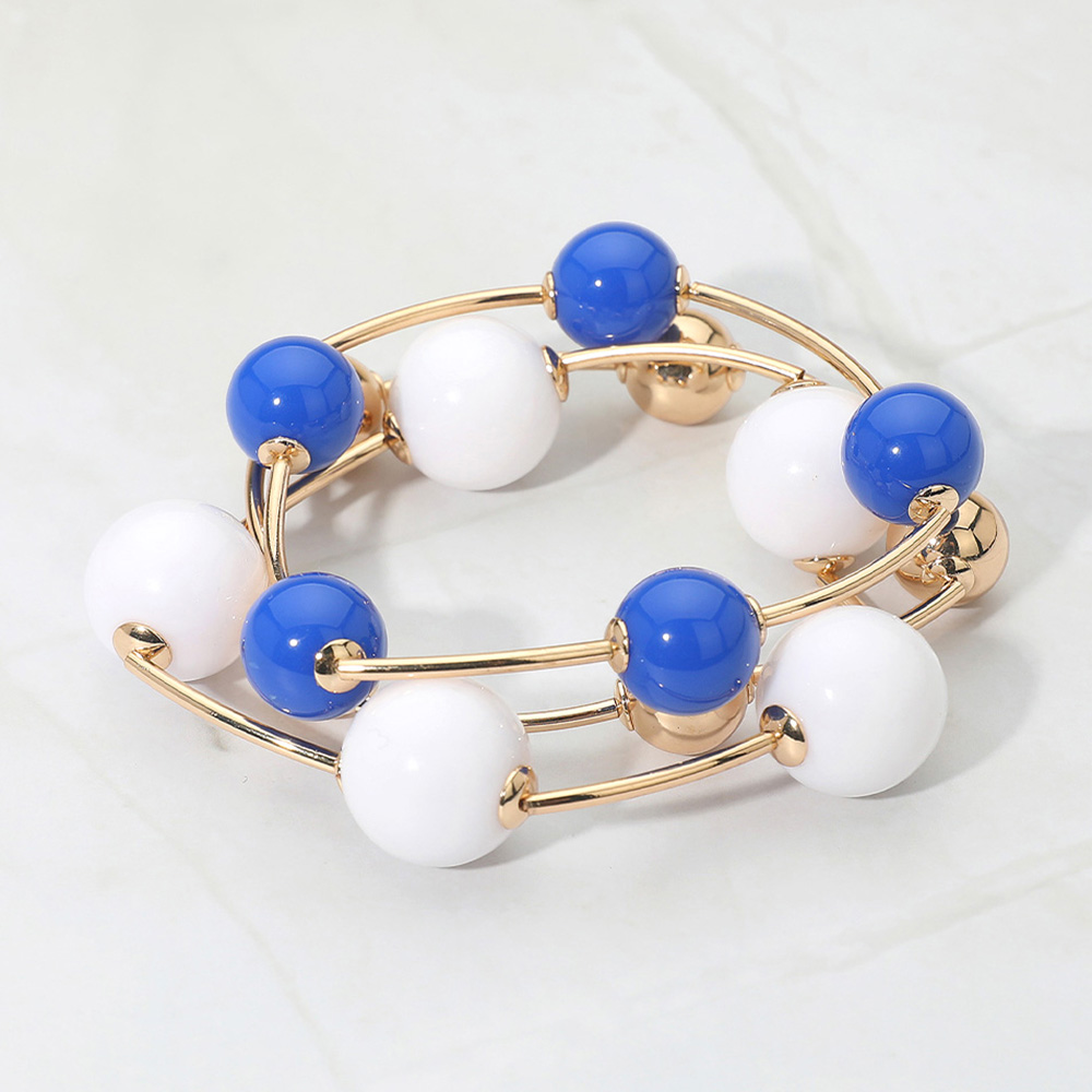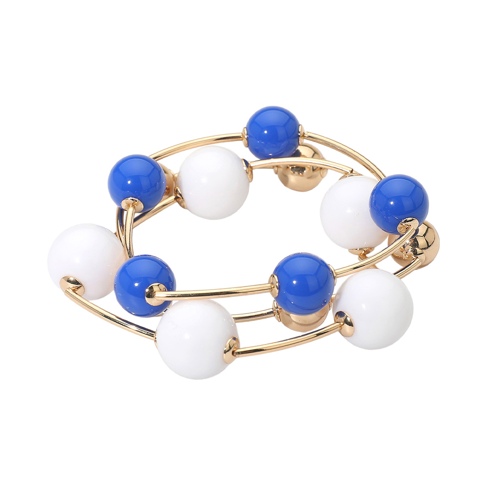 Details • Size : 1.75" H • Stretchable • Trendy bangle bracelet featuring bold round beads arranged on sleek bands for a playful and modern look. A fun statement piece that adds personality and charm to any outfit, perfect for stacking or wearing solo with stylish flair. • Lead and Nickel Compliant