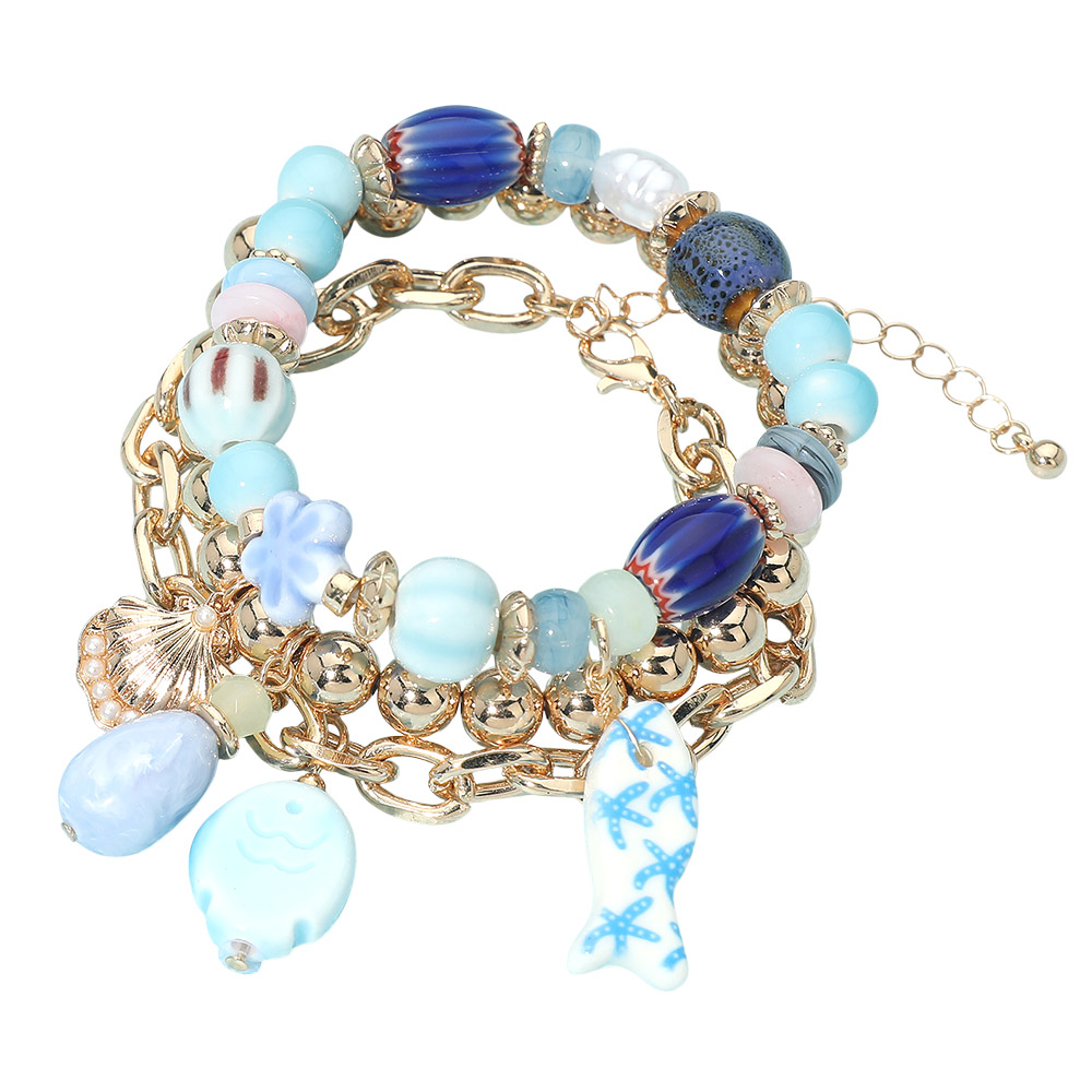 Details • Size 1 : 0.4" H, 0.4" X 1" / Stretchable • Size 2 : 0.25" H, 1" L Stretchable • Size 3 : 0.25" H, 7.5" + 2.25" L, 0.6" X 0.75" / Lobster Clasp Closure • Ocean-inspired charm bracelet featuring a layered beaded design with playful sea-themed accents and linked details. Designed for comfortable wear with eye-catching movement, this bracelet adds a fun, coastal touch to everyday outfits, vacation looks, and seasonal collections. Ideal for gift shops, summer assortments, and customers who love symbolic, story-driven accessories. • Lead and Nickel Compliant