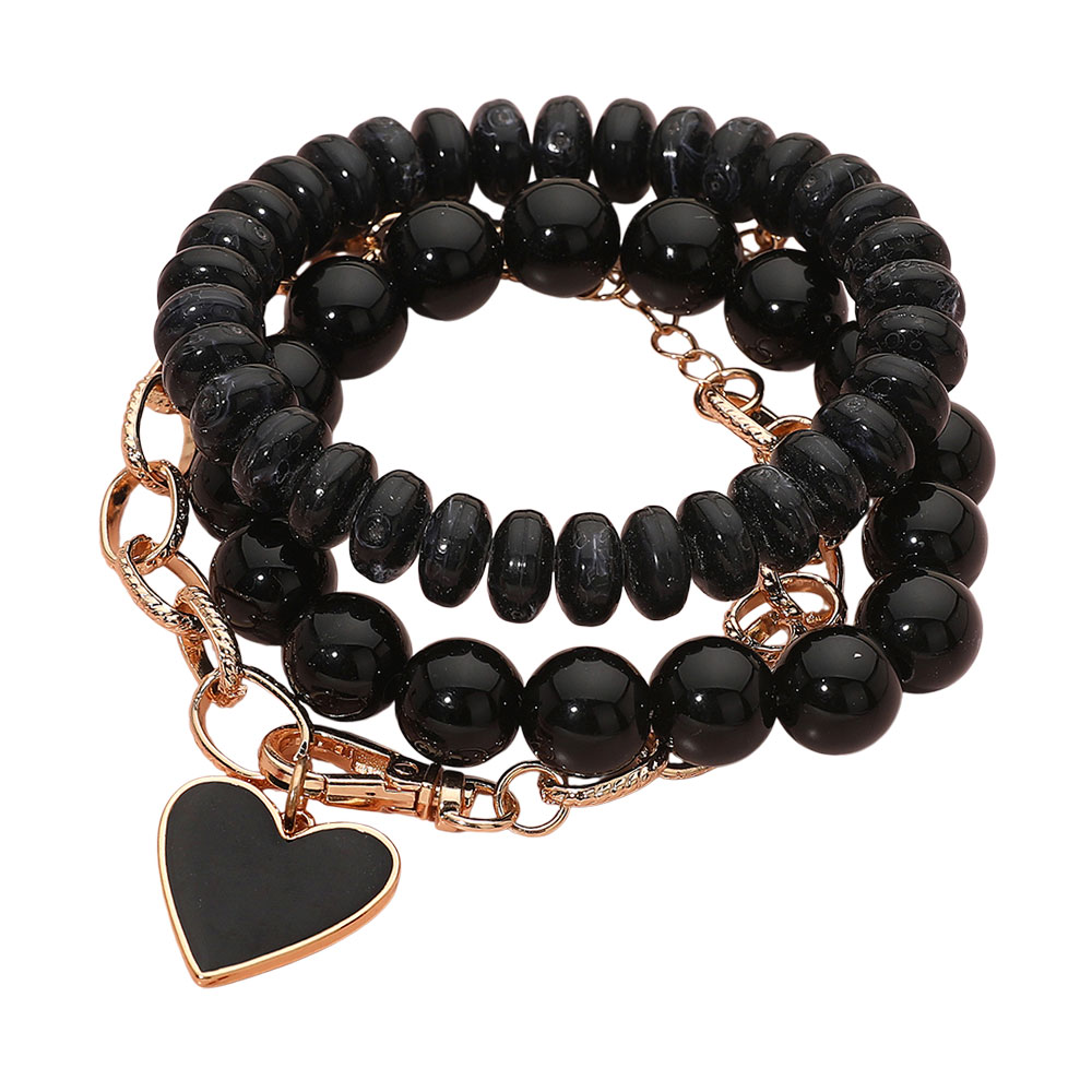 Details • Size 1 : 0.5" H / Stretchable • Size 2 : 0.4" H, 8" + 2" L / Lobster Clasp Closure • Charm Size : 0.8" X 0.8" • Eye-catching heart charm necklace featuring layered chunky bead styling and a textured oval chain design that adds depth, movement, and modern appeal. Perfect for elevating everyday outfits or enhancing evening looks as a bold standalone piece or layered accessory. • Lead and Nickel Compliant