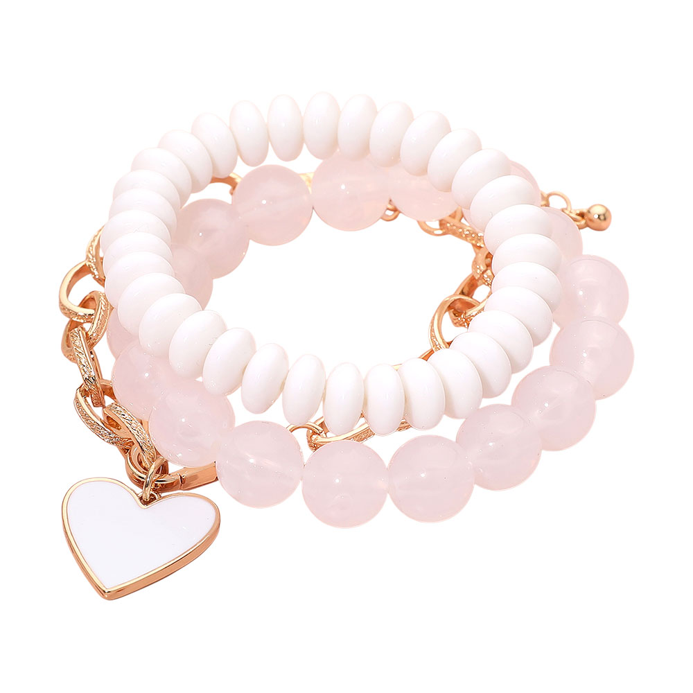 Details • Size 1 : 0.5" H / Stretchable • Size 2 : 0.4" H, 8" + 2" L / Lobster Clasp Closure • Charm Size : 0.8" X 0.8" • Eye-catching heart charm necklace featuring layered chunky bead styling and a textured oval chain design that adds depth, movement, and modern appeal. Perfect for elevating everyday outfits or enhancing evening looks as a bold standalone piece or layered accessory. • Lead and Nickel Compliant