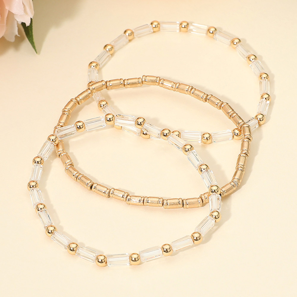 3PCS - Faceted Tube Beaded Stretch Multi Layered Bracelets