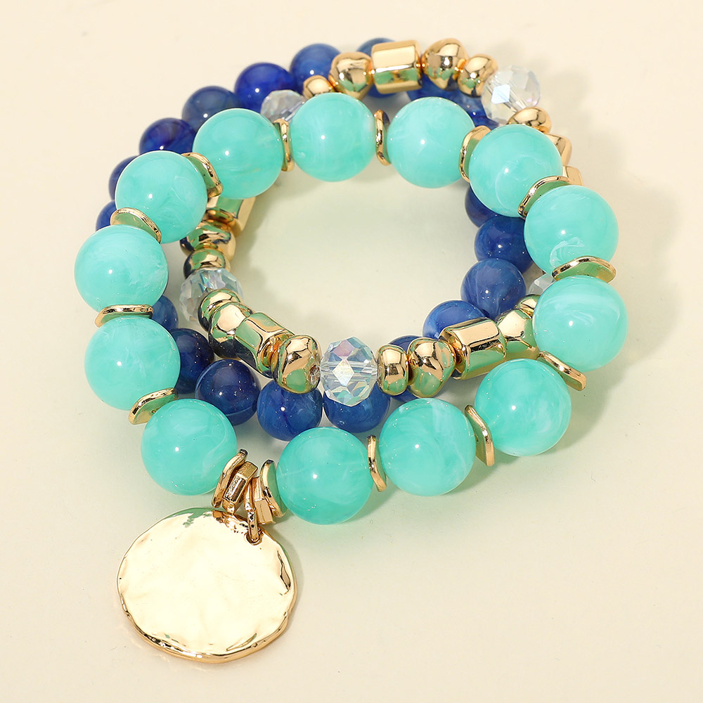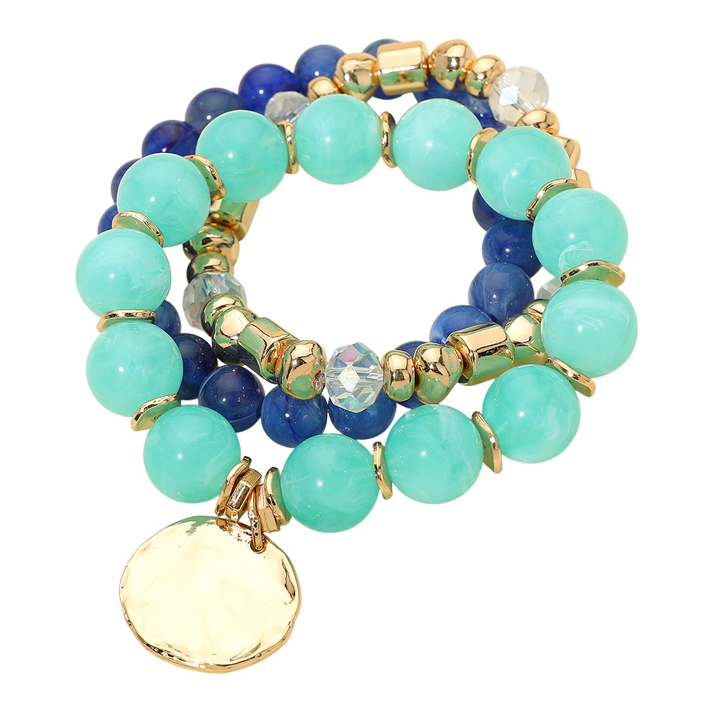 Details • Size : 1.25" H • Charm Size : 1" X 0.9" • Stretchable • Stylish stretch bracelet set featuring smooth round beads, faceted accents, and a dangling disc charm for added movement. Designed for comfortable wear and easy stacking, this versatile bracelet set elevates everyday outfits and pairs effortlessly with casual or dressy looks. • Lead and Nickel Compliant