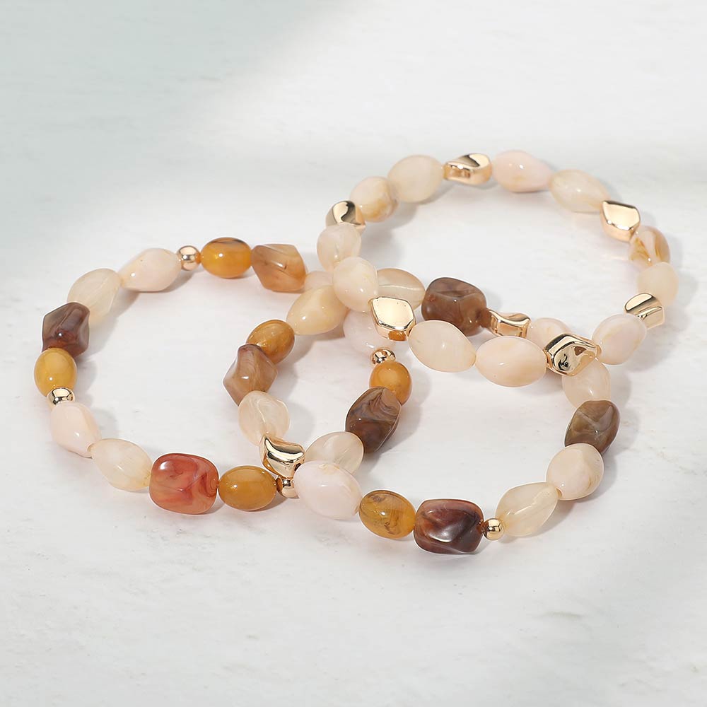 3PCS - Marbled Resin Pebble Beaded Stretch Multi Layered Bracelets 3PCS - Marbled Resin Pebble Beaded Stretch Multi Layered Bracelets 3PCS - Marbled Resin Pebble Beaded Stretch Multi Layered Bracelets