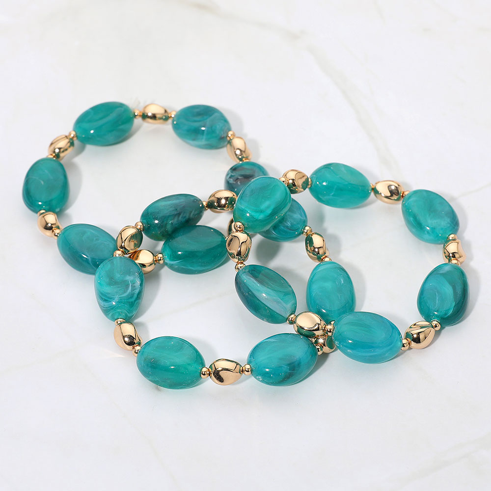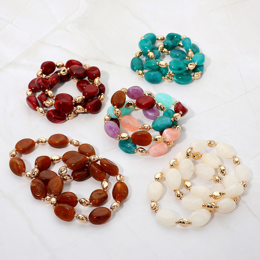 3PCS - Oval Pebble Beaded Stretch Multi Layered Bracelet