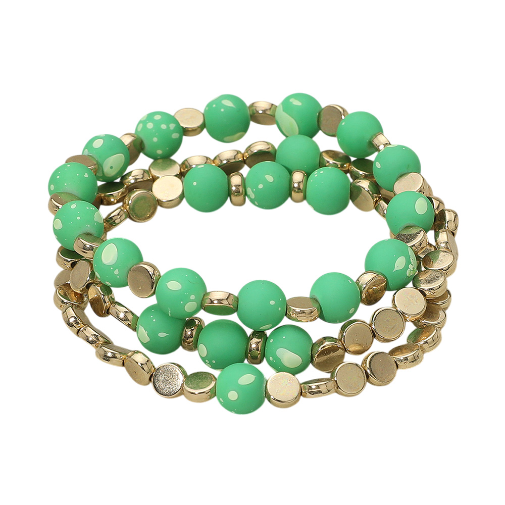 Details • Size : 1" H • Stretchable • Add effortless charm to your look with this beaded stretch bracelet set featuring a mix of glossy beads and metallic accents. Designed for easy layering, these versatile bracelets can be worn together or separately, making them the perfect accessory for everyday style or gifting. • Lead and Nickel Compliant