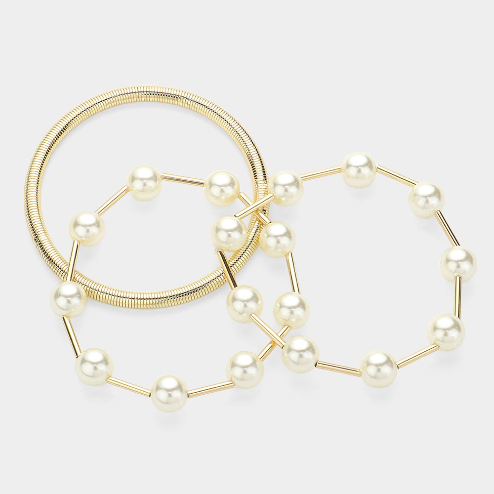 3PCS - Pearl Station Metal Coil Stretch Multi Layered Bracelets