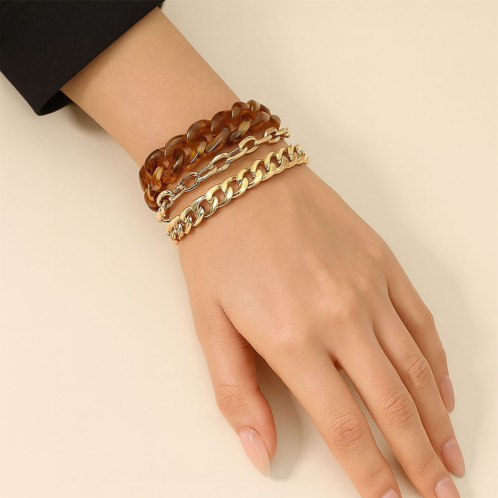 3PCS - Resin Metal Chain Link Multi Layered Bracelets