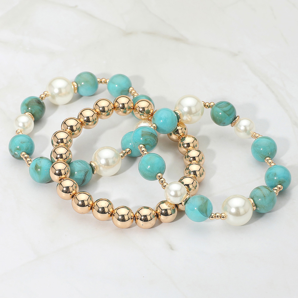 3PCS - Round Pearl Mixed Beaded Stretch Multi Layered Bracelets 3PCS - Round Pearl Mixed Beaded Stretch Multi Layered Bracelets 3PCS - Round Pearl Mixed Beaded Stretch Multi Layered Bracelets