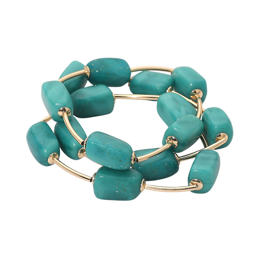3PCS - Speckled Resin Pebble Metal Bar Beaded Stretch Multi Layered Bracelets