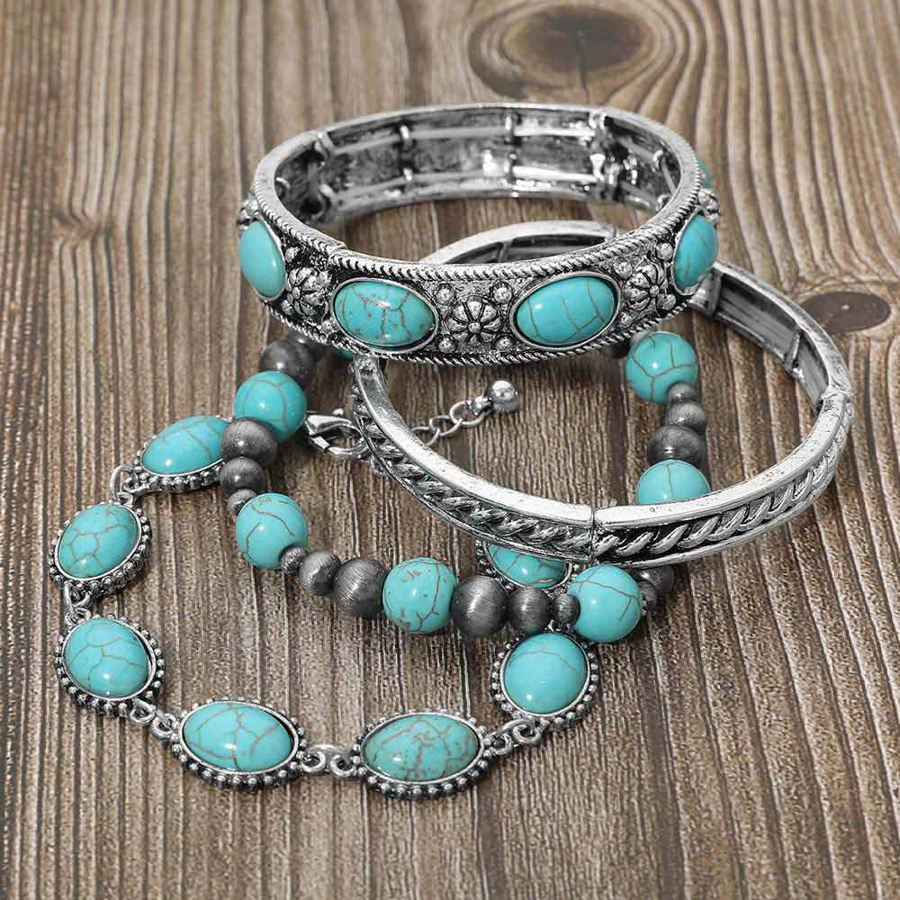 4PCS - Boho Oval Round Stone Embellished Stretch Multi Layered Bracelets