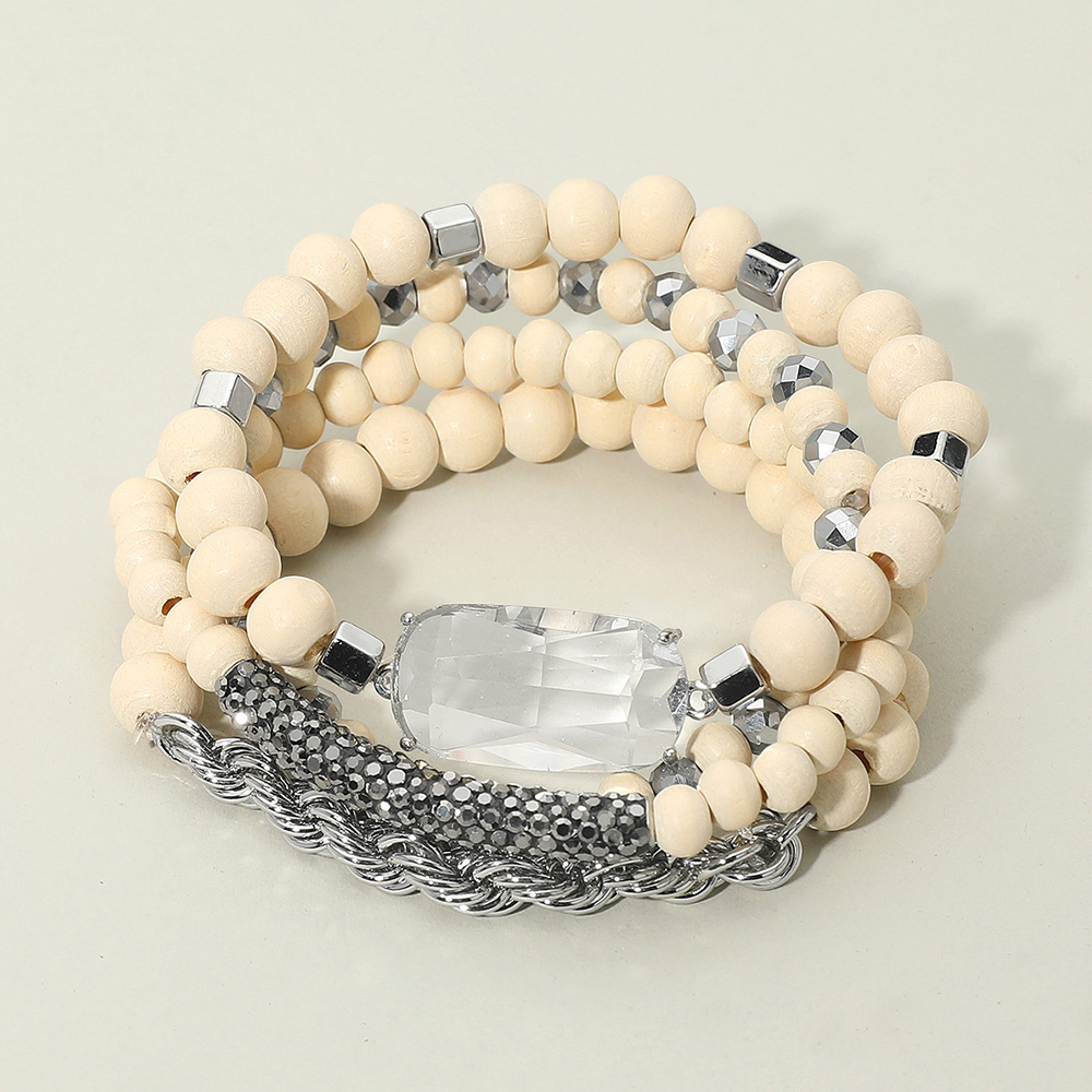 4PCS - Lucite Bead Accented Metal Ball Stretch Bracelets