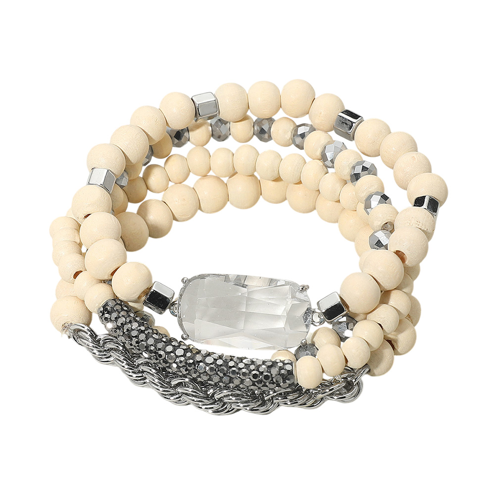 Abstract Metal Accented Faceted Beaded Stretch Bracelet