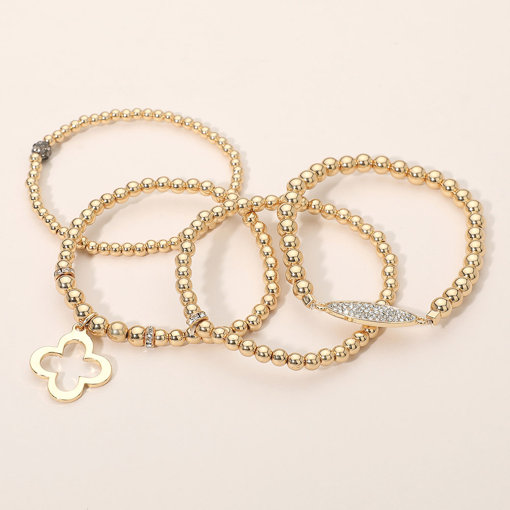 4PCS - Open Quatrefoil Charm Accent Metal Ball Beaded Stretch Multi Layered Bracelets