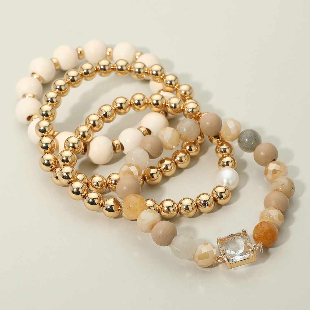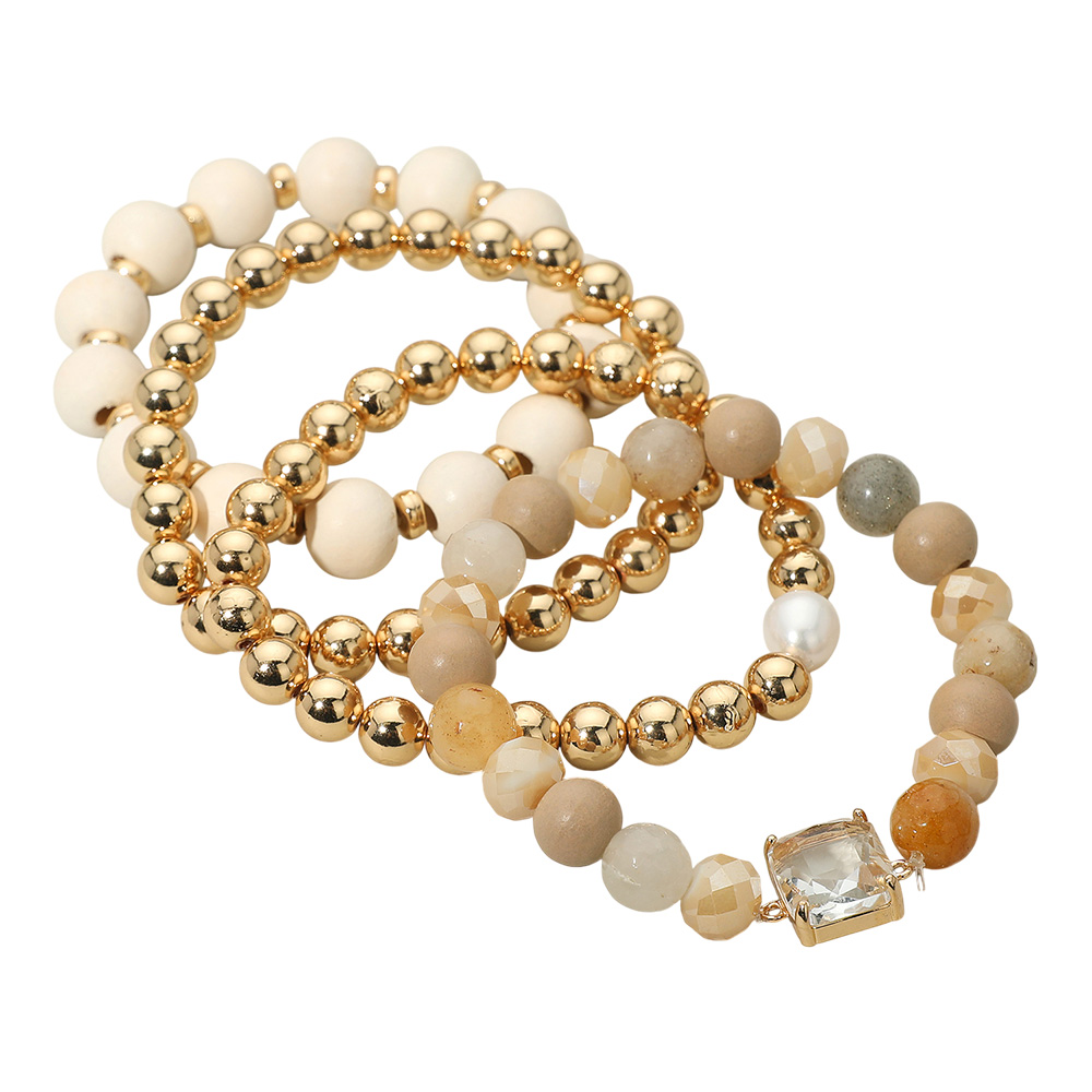 4PCS - Stone Wood Metal Ball Beaded Stretch Bracelets
