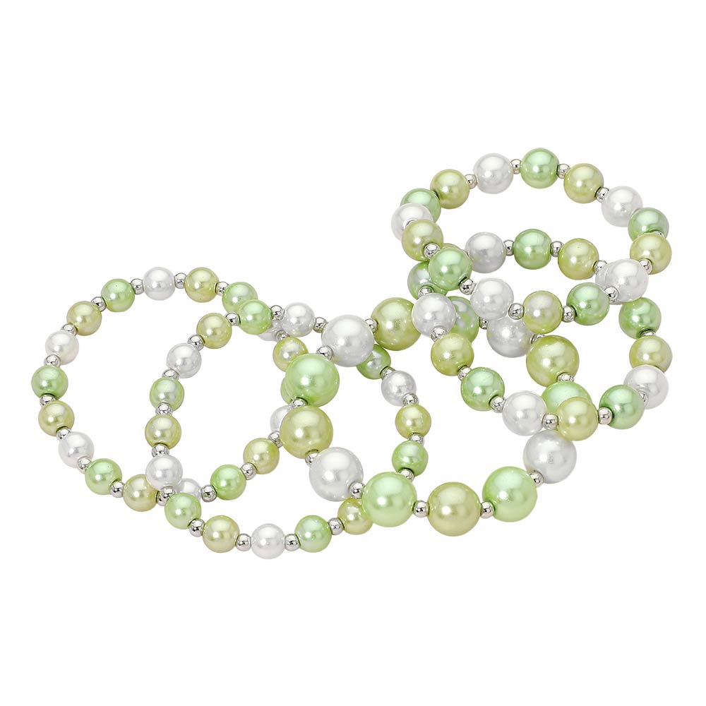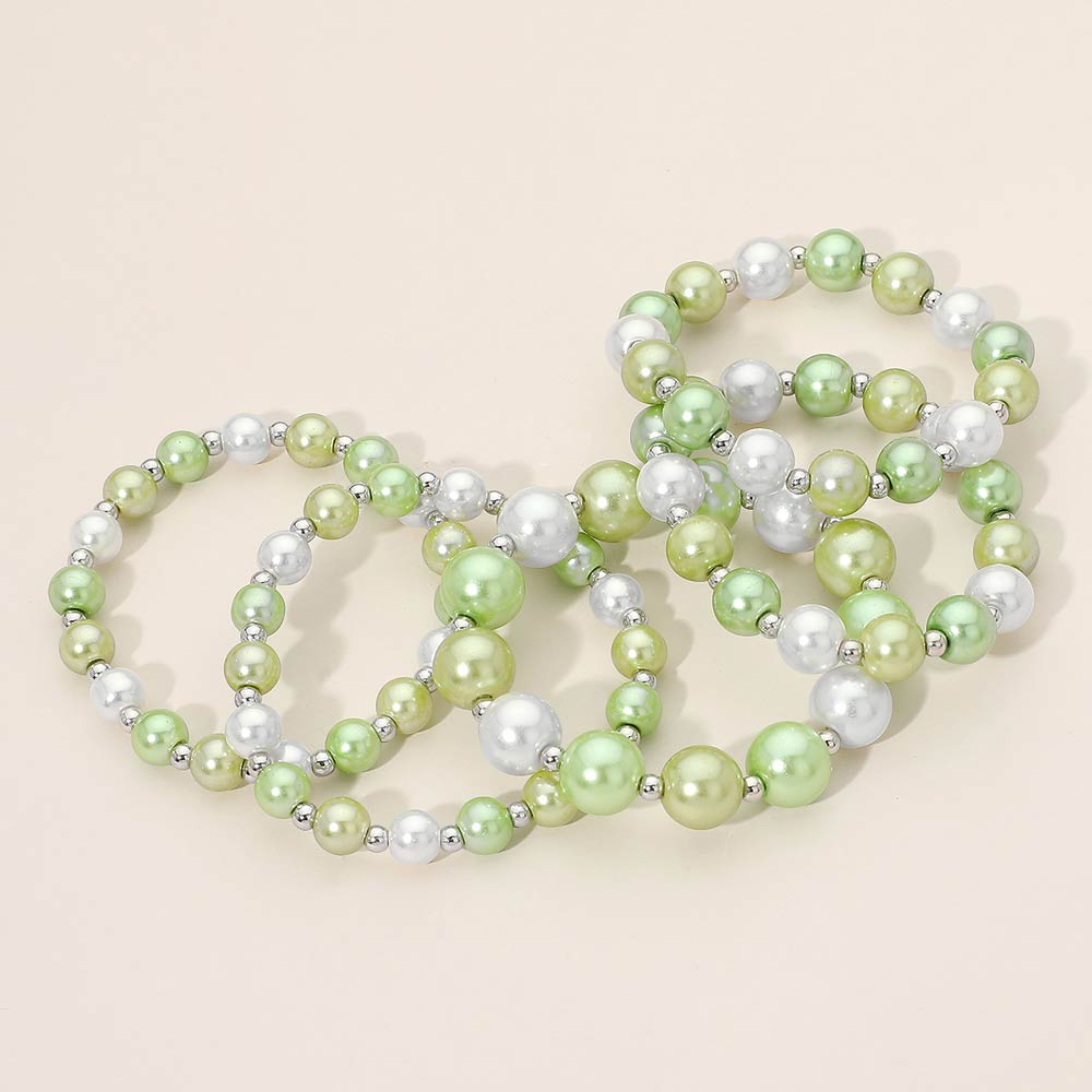 5PCS - Colorful Pearl Beaded Stretch Multi Layered Bracelets