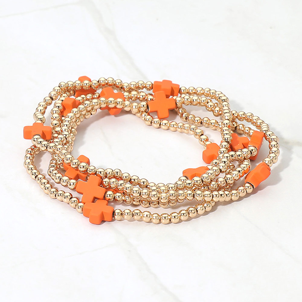 5PCS - Cross Pointed Metal Ball Beaded Stretch Multi Layered Bracelets