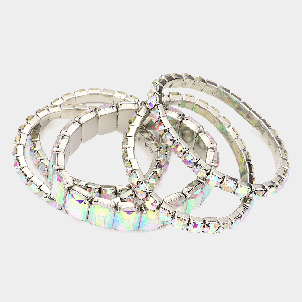 5PCS - Emerald Cut Round Stone Stretch Evening Bracelets 5PCS - Emerald Cut Round Stone Stretch Evening Bracelets 5PCS - Emerald Cut Round Stone Stretch Evening Bracelets