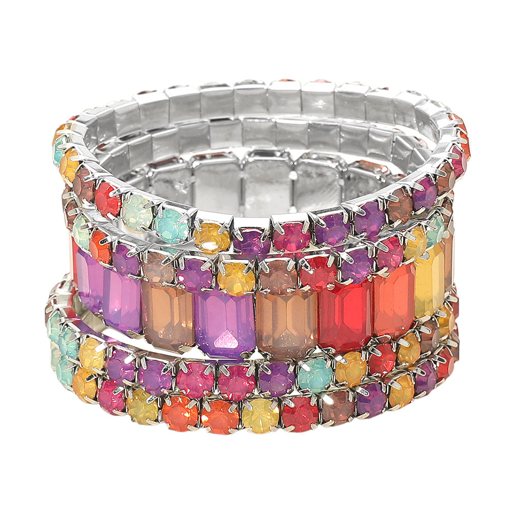 5PCS - Emerald Cut Round Stone Stretch Evening Bracelets 5PCS - Emerald Cut Round Stone Stretch Evening Bracelets 5PCS - Emerald Cut Round Stone Stretch Evening Bracelets