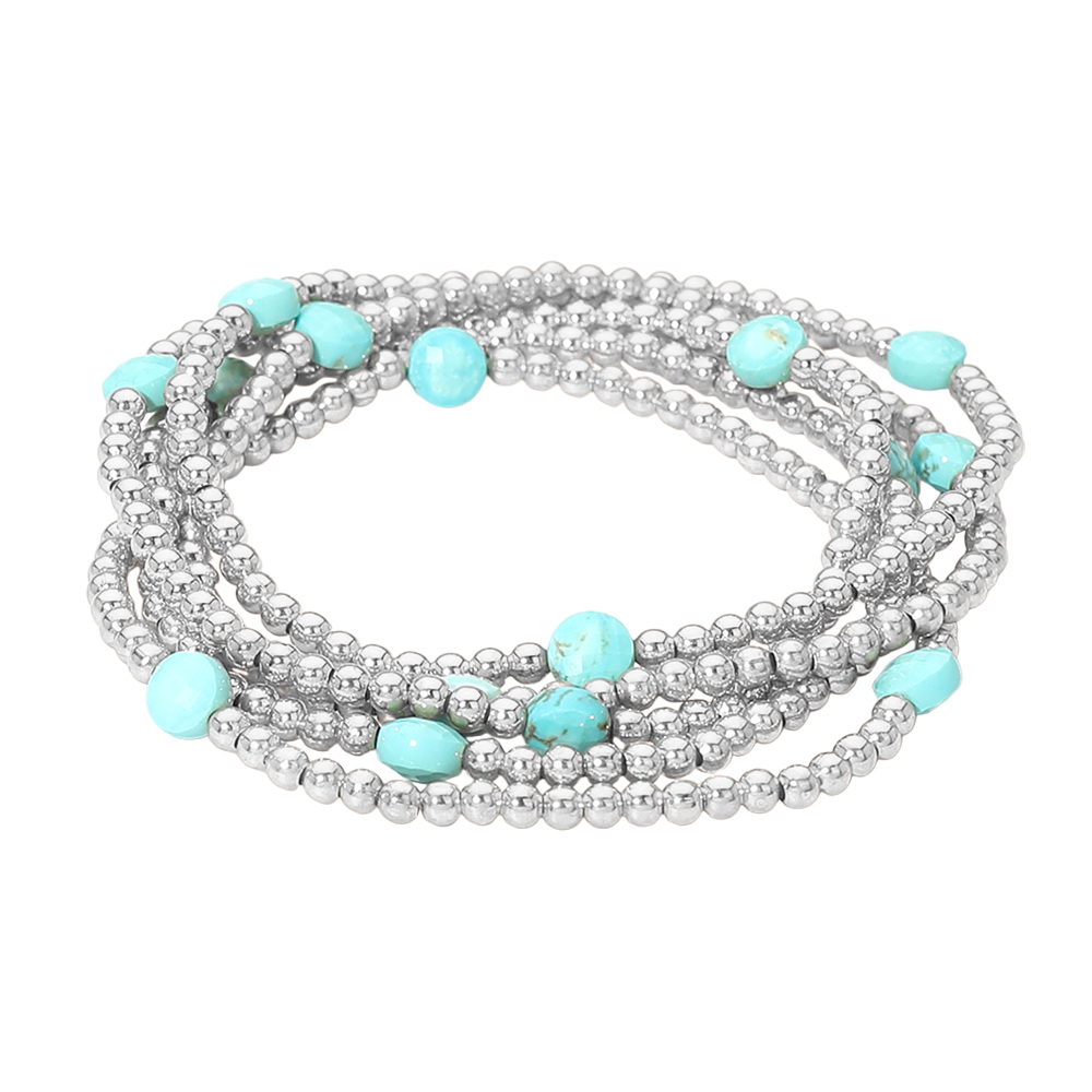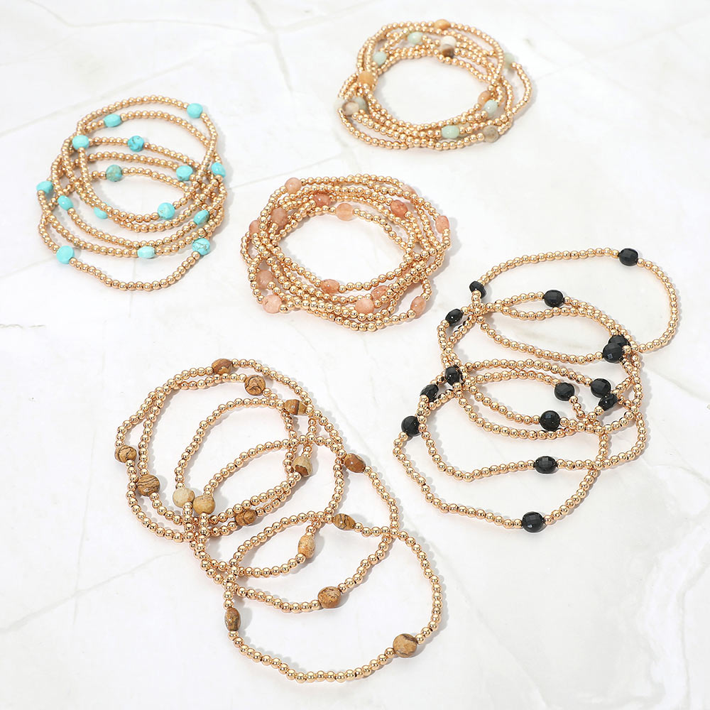 • This multi strand stretch bracelet set features layered beaded designs accented with smooth round details for a refined, everyday look. Easy to wear and stack, it offers a balanced blend of texture and simplicity, making it ideal for daily styling, gifting, or boutique accessory collections.