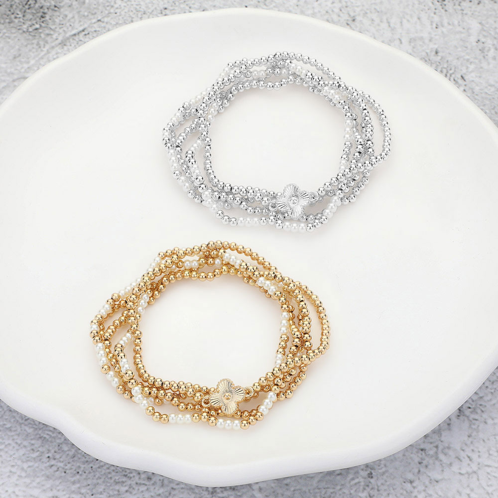 Details • Size : 0.75" H • Stretchable • This multi-strand stretch bracelet set features smooth, polished beads arranged in a delicate layered design. Lightweight and easy to wear, it adds a refined accent to both casual and dressy looks, making it a versatile accessory for everyday style or special occasions. • Lead and Nickel Compliant