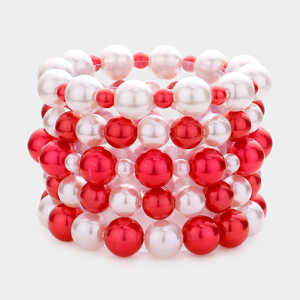 Rhinestone Paved Geometric Square Pendant Pearl Necklace