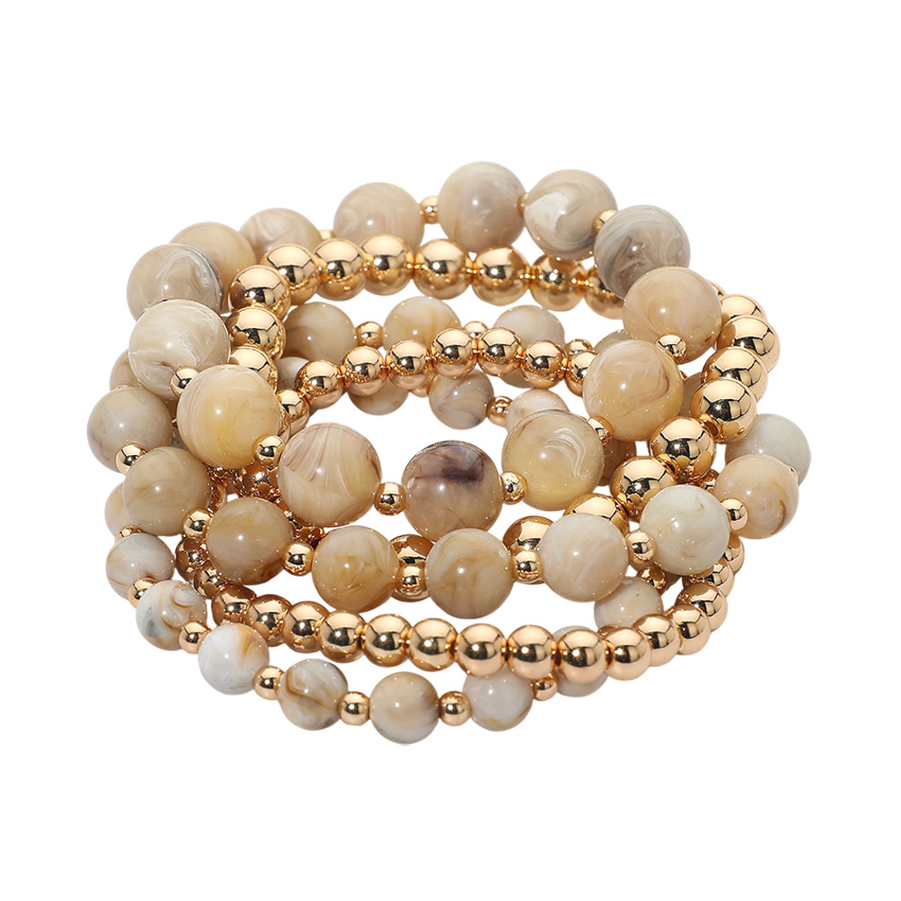 5PCS - Resin Metal Ball Beaded Stretch Multi Layered Bracelets