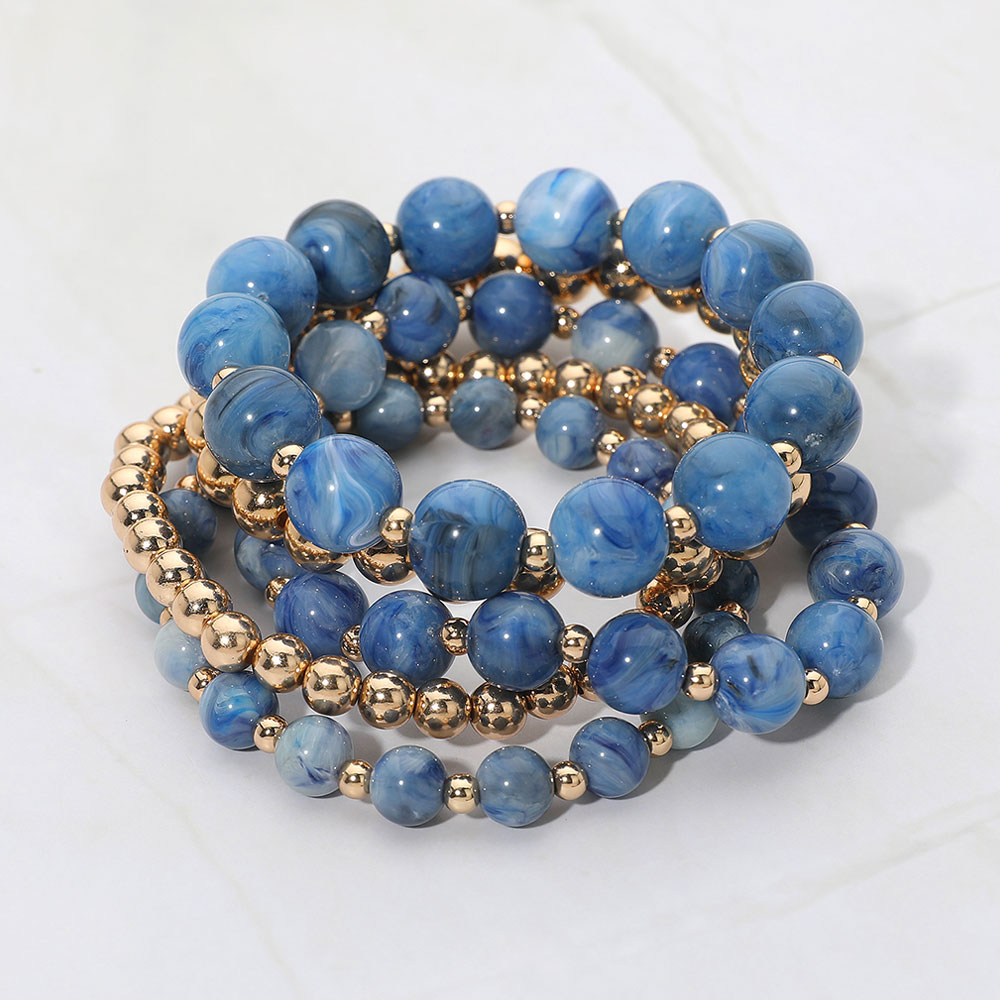 5PCS - Resin Metal Ball Beaded Stretch Multi Layered Bracelets