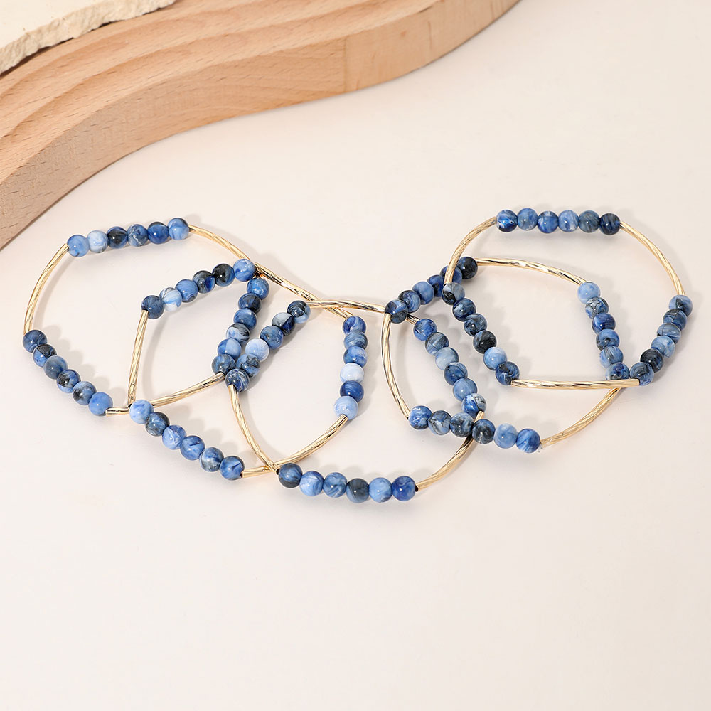5PCS -Round Ball Curved Textured Bar Beaded Stretch Multi Layered Bracelets