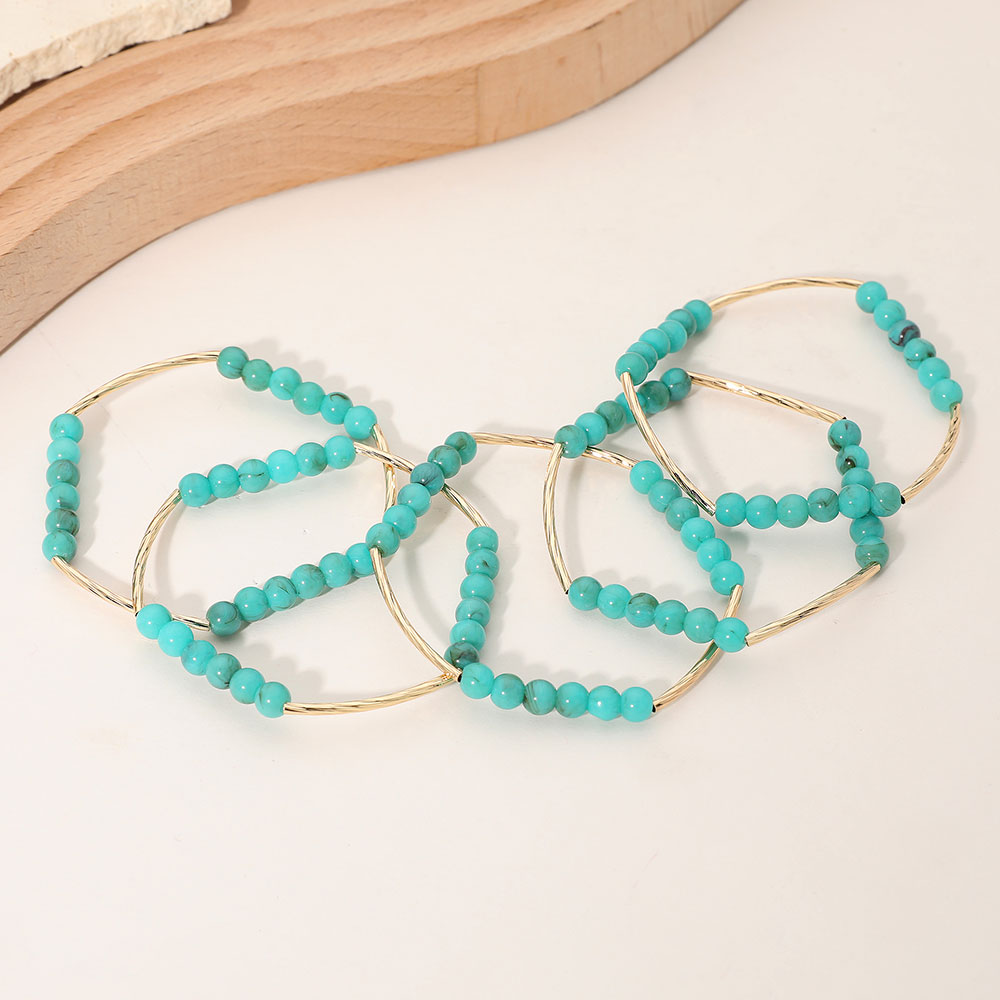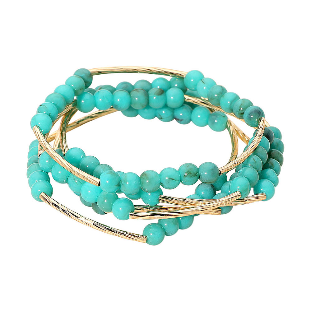 5PCS -Round Ball Curved Textured Bar Beaded Stretch Multi Layered Bracelets