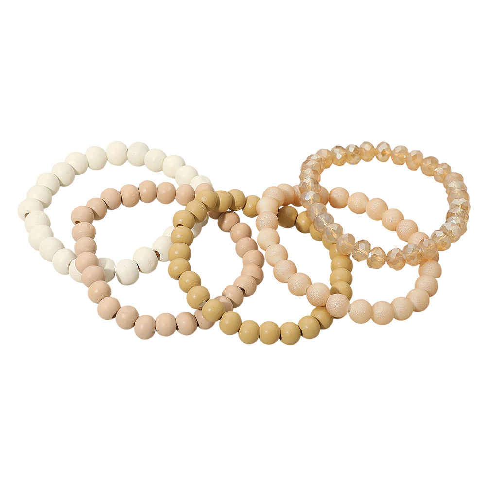 • This five-piece beaded bracelet set is designed for versatile stacking and effortless everyday wear. With a mix of smooth and faceted beads, each strand adds texture and interest. Wear them together for a bold layered look or separately for simple, stylish accents.