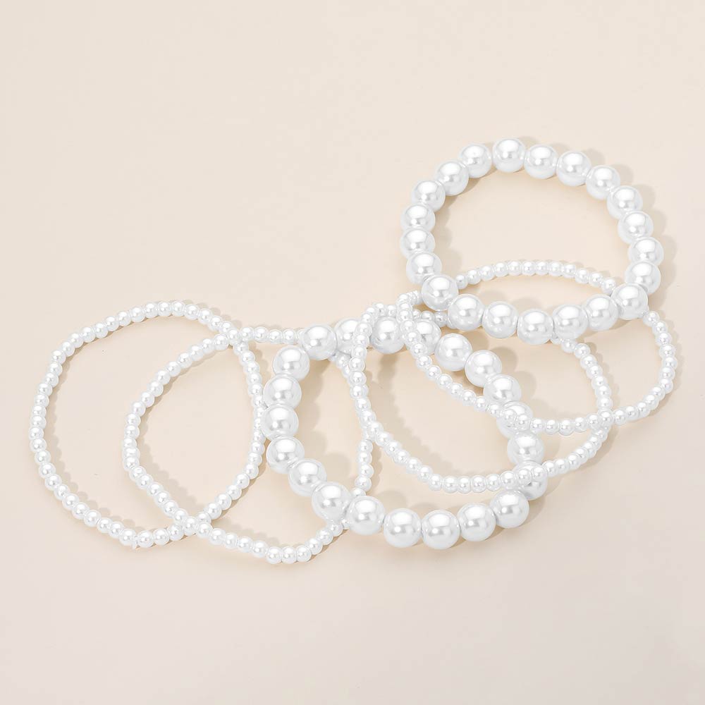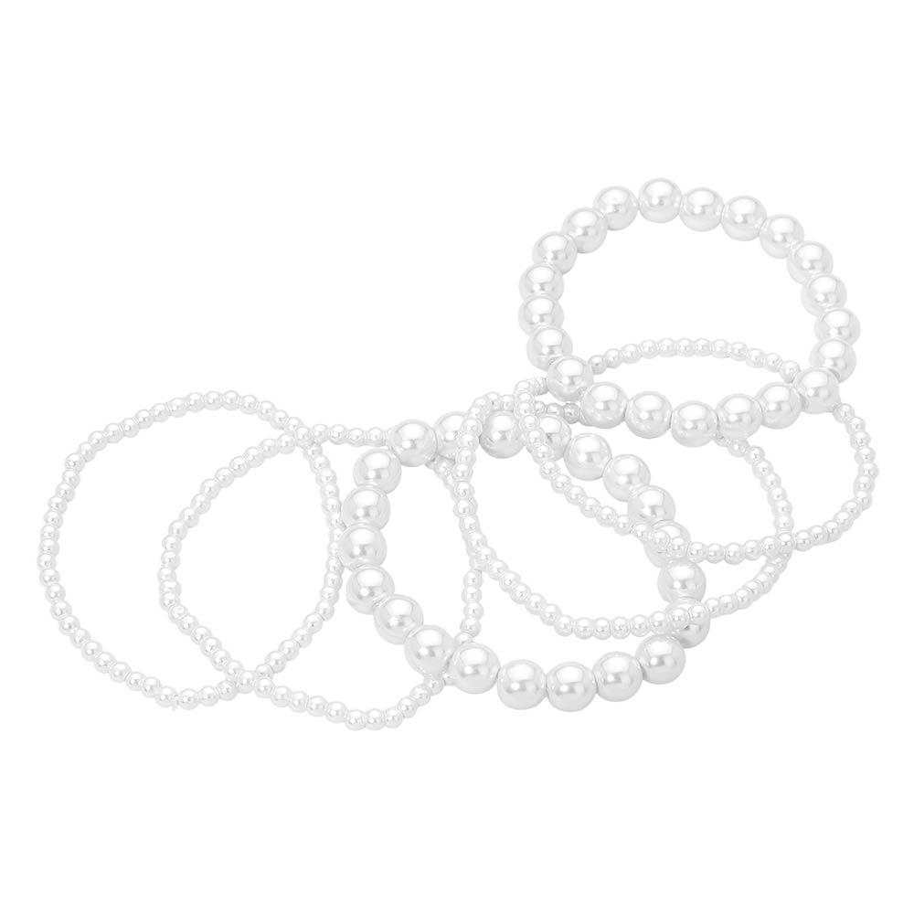 6PCS - Pearl Beaded Stretch Multi Layered Bracelets