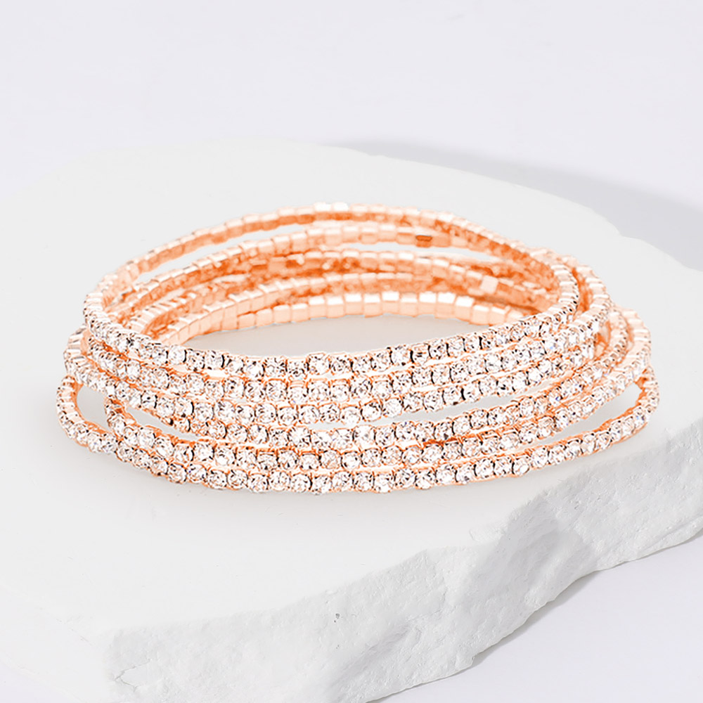 6PCS - Rhinestone Multi Layered Stretch Evening Bracelets