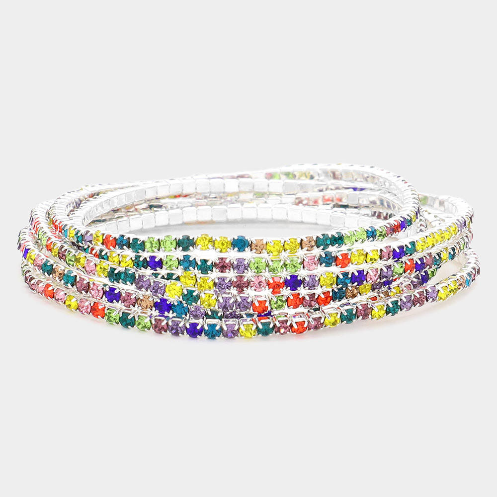 12PCS - Ribbon Colorful Rhinestone Layered Stretch Bracelets
