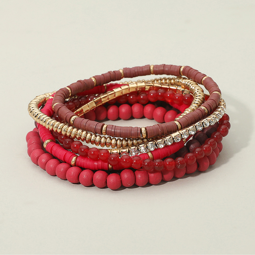 • This multi-strand stretch bracelet set combines a mix of smooth beads, metallic accents, and shimmering details for a stylish layered look. Easy to slip on, it offers comfort and versatility, making it perfect for stacking or wearing alone as a bold statement accessory.