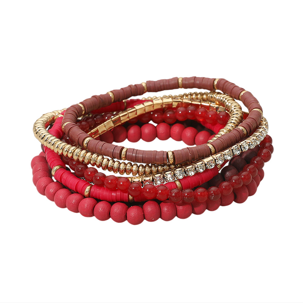 5PCS - Faceted Beaded Heishi Beaded Multi Layered Stretch Bracelet
