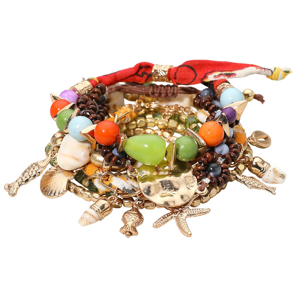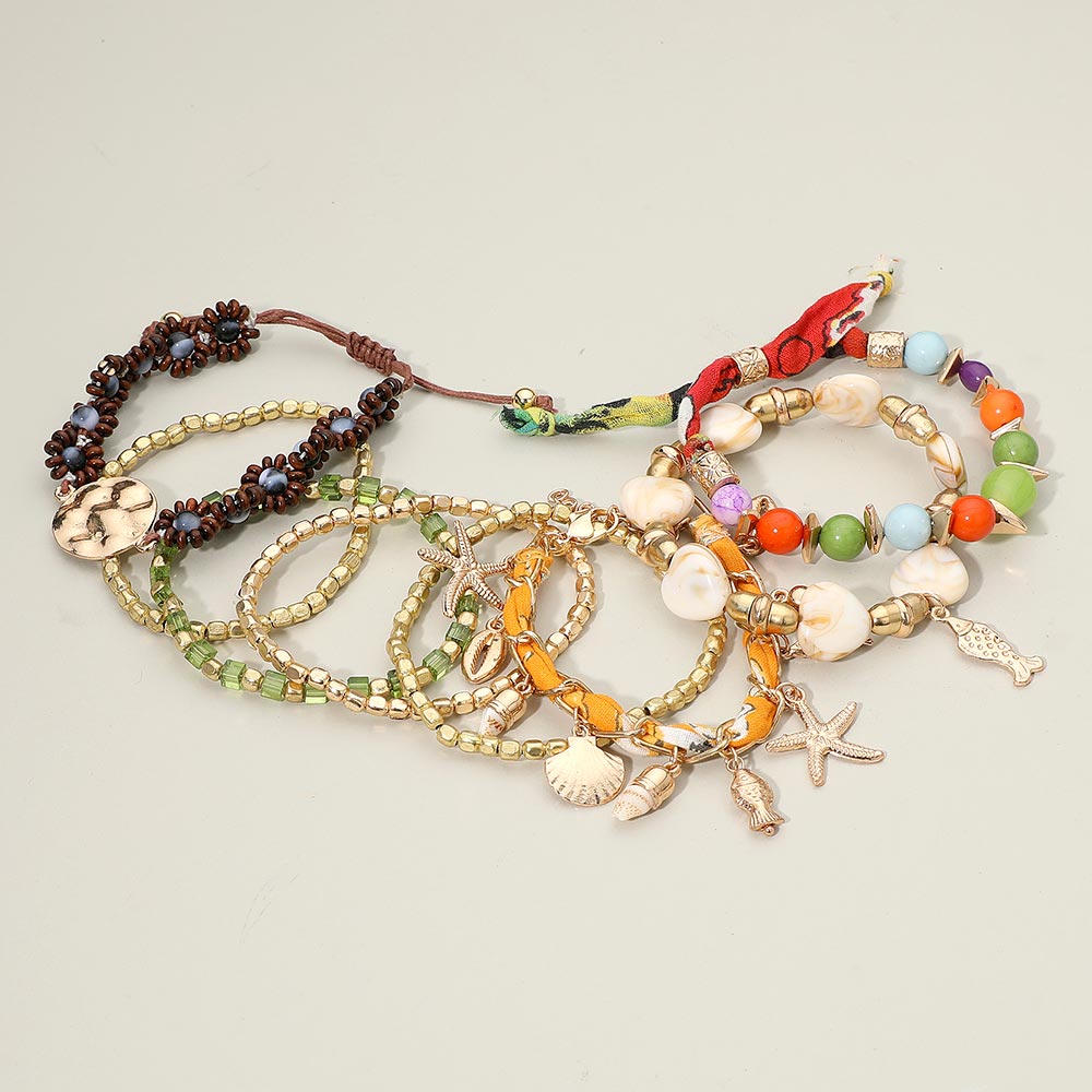 Details • Size 1 : 1.2" H / Stretchable • Size 2 : 0.8" H / Adjustable • Size 3 : 1" H, 7" + 2" L / Lobster Clasp Closure • A vibrant boho bracelet stack featuring mixed beads, playful charms, and layered textures that create a lively, eclectic look. Designed for effortless styling, this set adds personality to everyday outfits and offers a fun, expressive accessory choice for any casual ensemble. • Lead and Nickel Compliant • Made In India