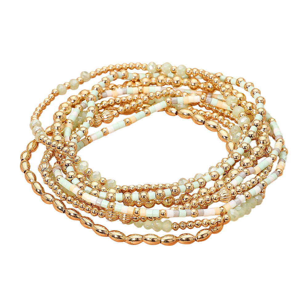 8PCS - Seed Beaded Stretch Multi Layered Bracelets