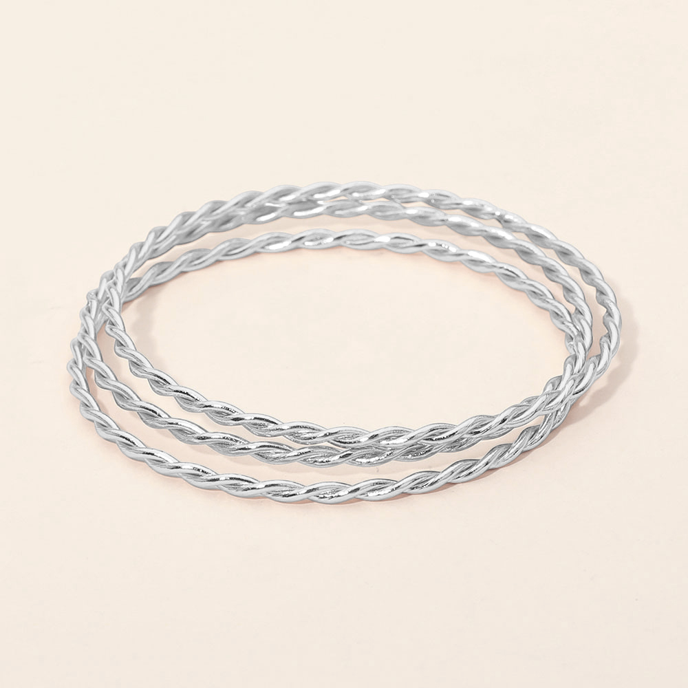 SECRET BOX_3PCS Stainless Steel Twisted Stackable Multi Layered Bangle Bracelets