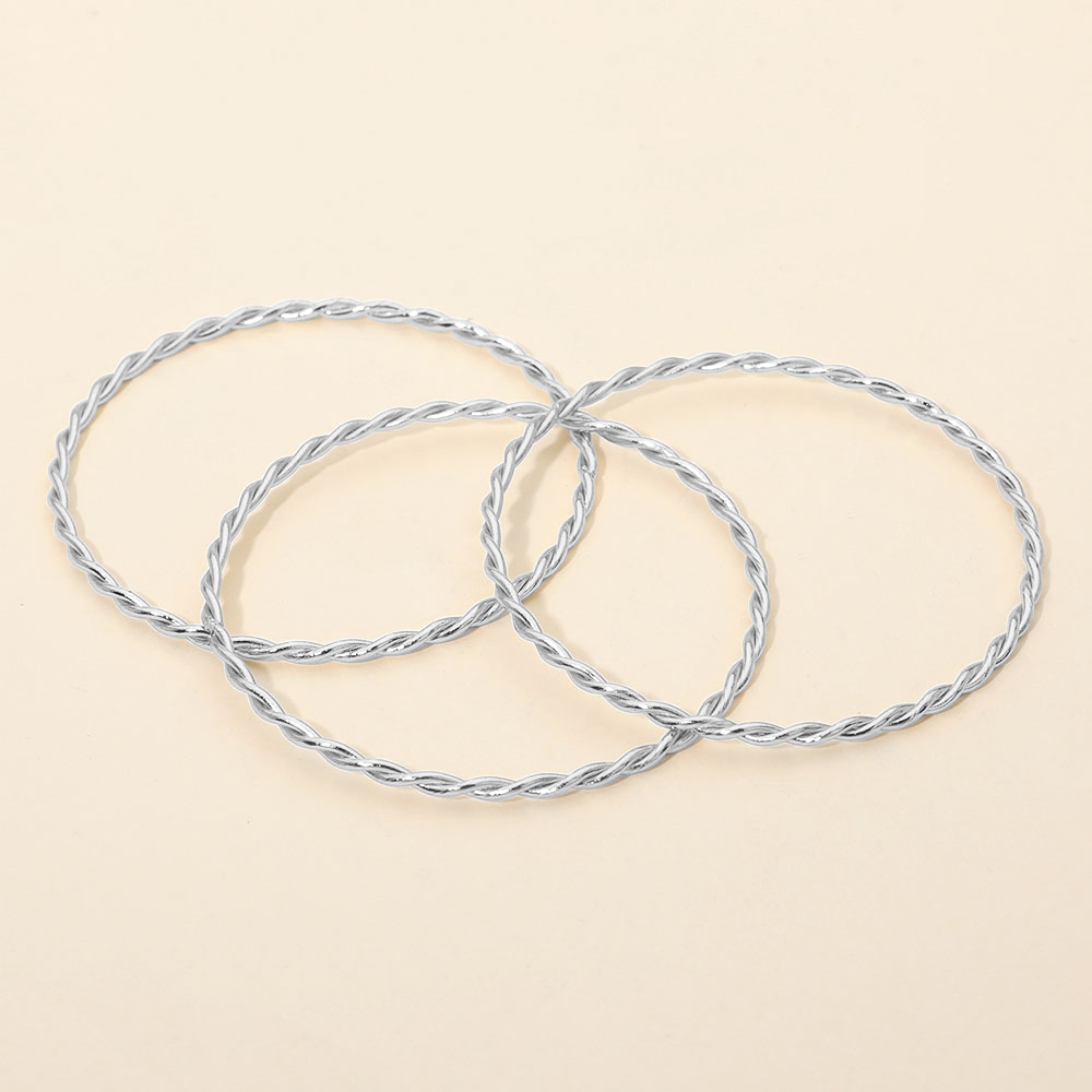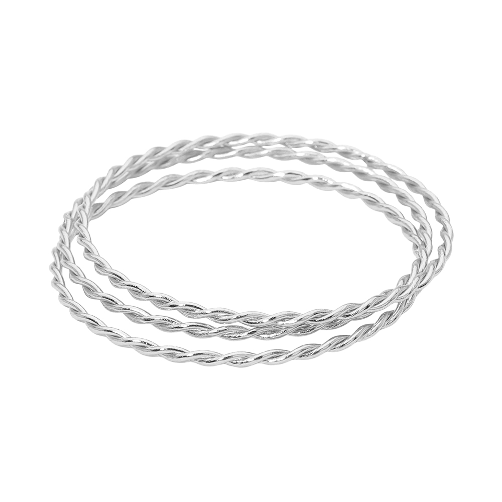 Details • Size : 0.4" H, 2.6" D • Water Resistant • Elegant twisted rope stackable bangle set featuring a timeless circular design that adds texture and movement to wrist styling. Ideal for layering or wearing solo, this versatile bangle set complements casual outfits, office looks, and evening wear with effortless, modern appeal. • Hypoallergenic • Stainless Steel