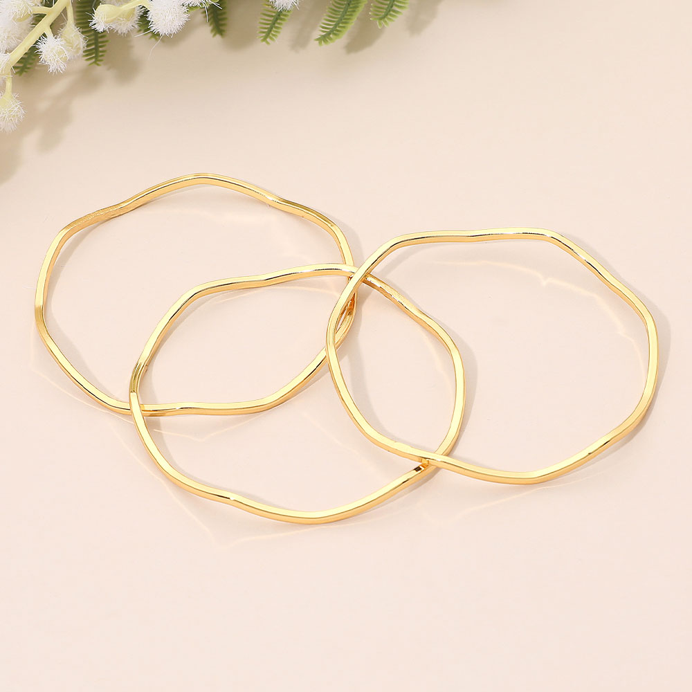 Details • Size : 0.25" H, 24" D • Water Resistant • Elegant layered bangle bracelet set featuring softly textured, organic-shaped bands for subtle dimension and shine. Designed to elevate everyday looks or complete polished outfits, this versatile stack can be worn together for a statement or mixed effortlessly with other favorites. • Hypoallergenic • Stainless Steel