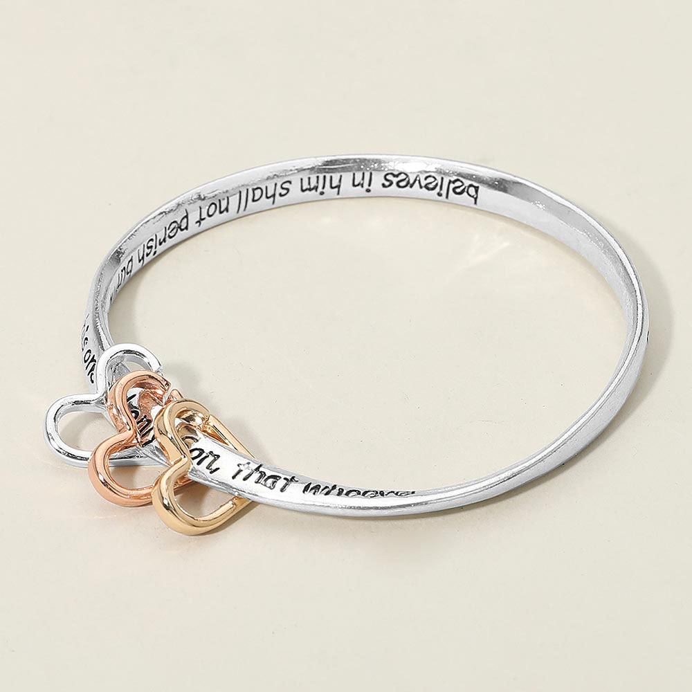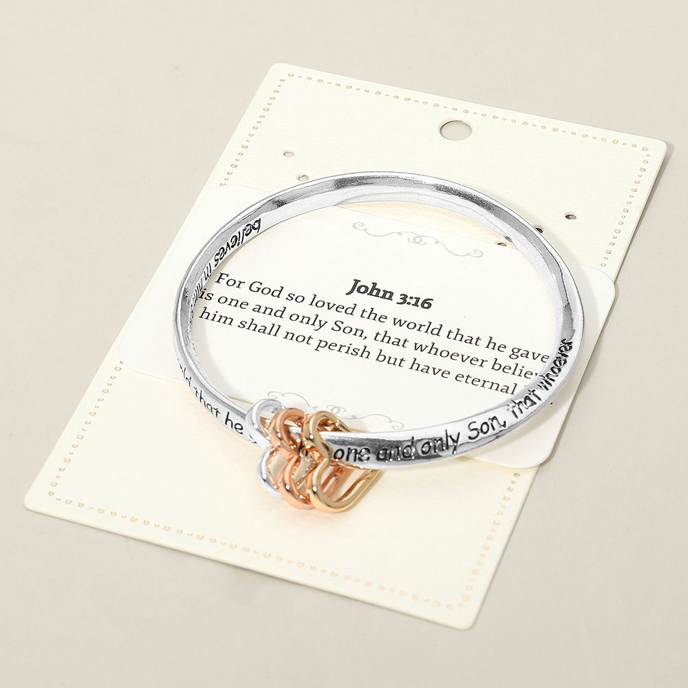 Details • Size : 0.75" H, 2.5" D • Celebrate meaningful style with this scripture verse bangle bracelet featuring an inspiring engraved message and charming accent rings. A thoughtful accessory for daily wear or gifting, blending faith-inspired sentiment with timeless design for a look that feels personal and uplifting. • Lead and Nickel Compliant