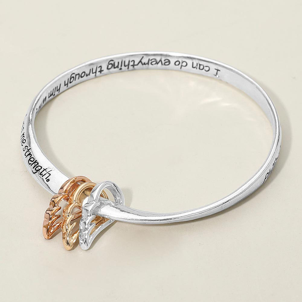 PHILIPPIANS 413 Religious Message Engraved Triple Open Angel Wings Charm Bangle Bracelet