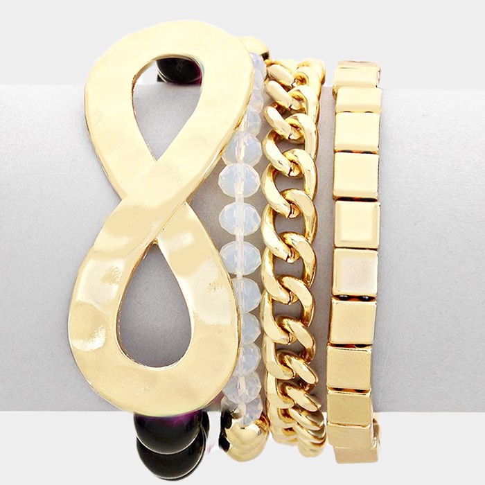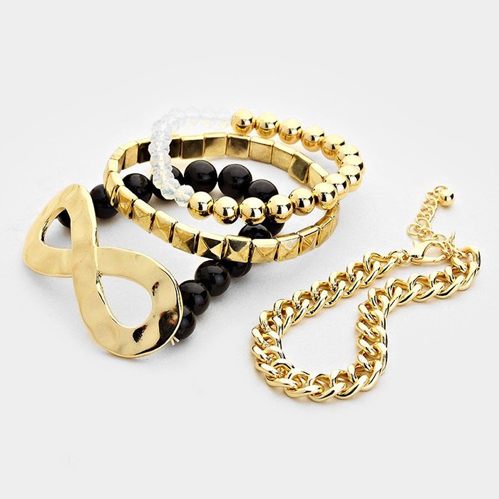 4 PCS - 3 Infinity bead stack stretch bracelets + metal chain bracelet