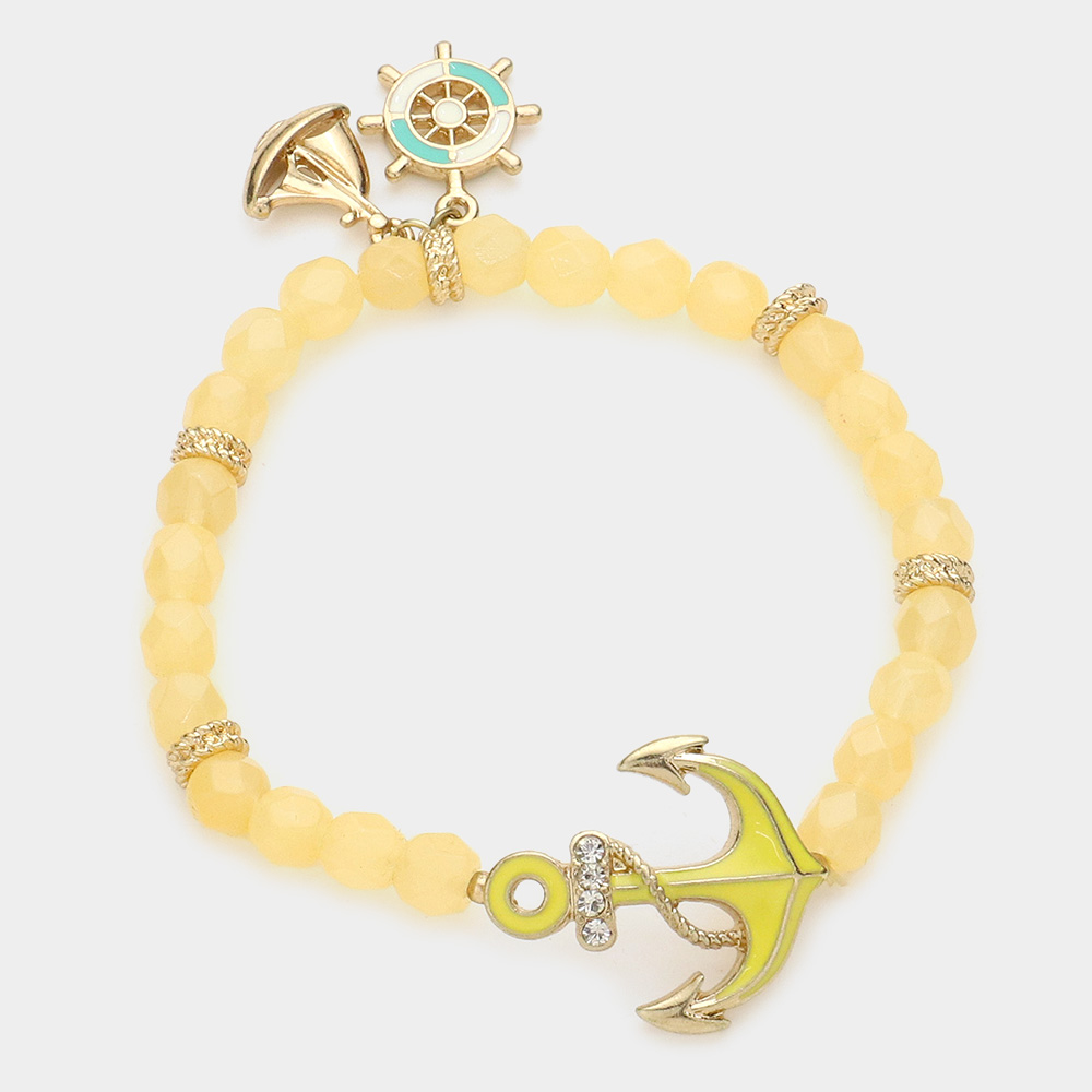 Ocean Inspired Charm Faceted Beaded Double Layered Necklace