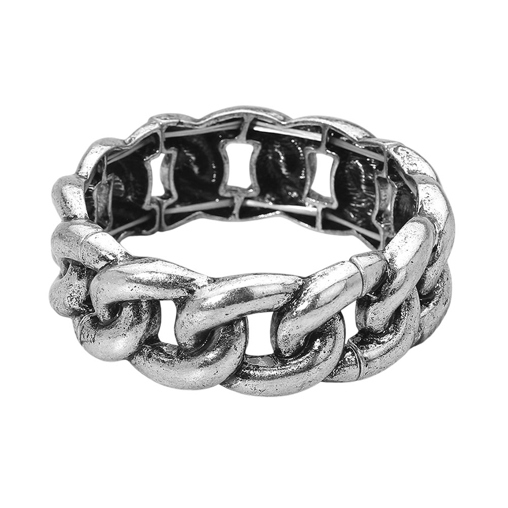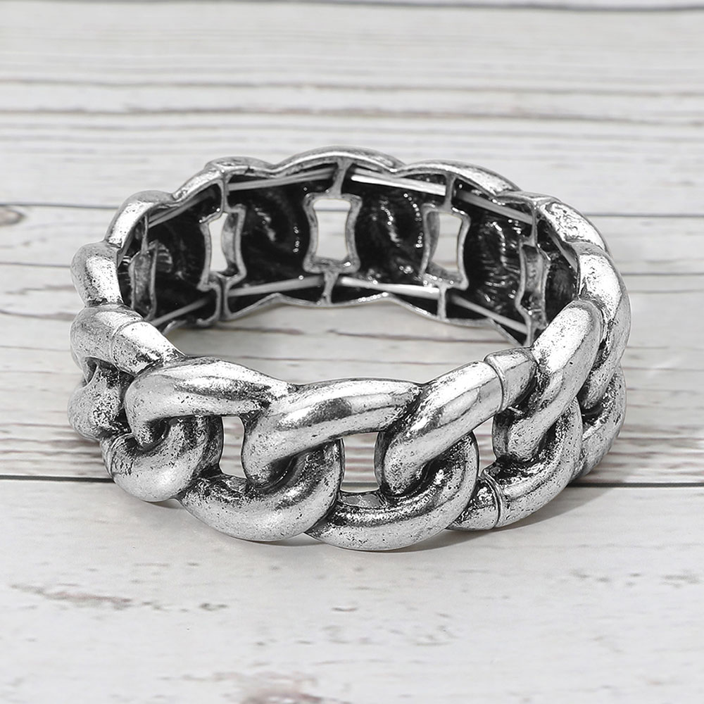 Details • Size : 0.9" H • Stretchable • Bold chunky chain link bracelet featuring an oversized interlocking design that delivers a strong statement look. The stretch construction allows for easy slip-on wear and a comfortable fit. Perfect for elevating everyday outfits, layering with other bracelets, or adding a modern edge to curated boutique accessory collections. • Lead and Nickel Compliant