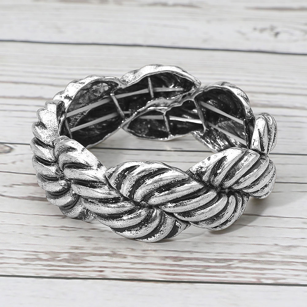 Boho Textured Metal Twisted Rope Stretch Bracelet